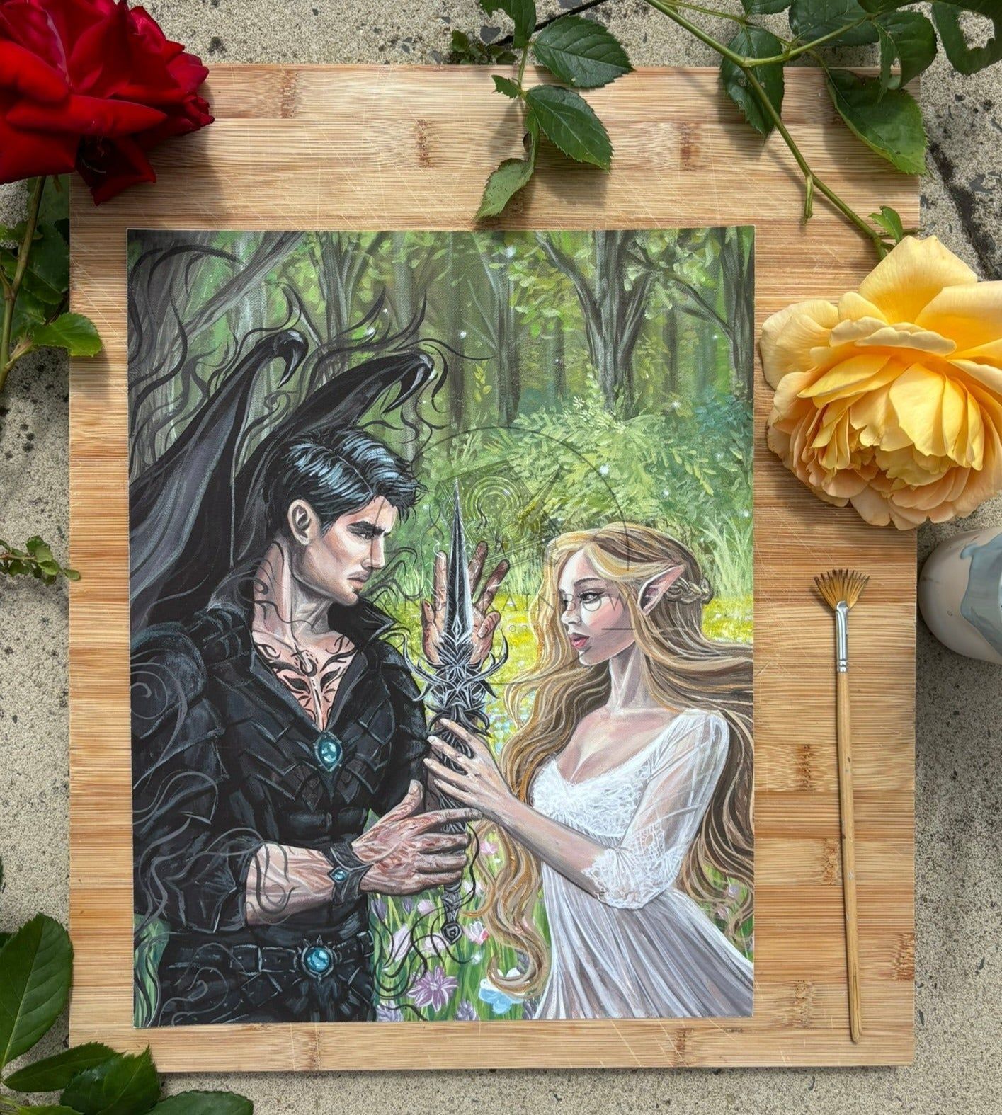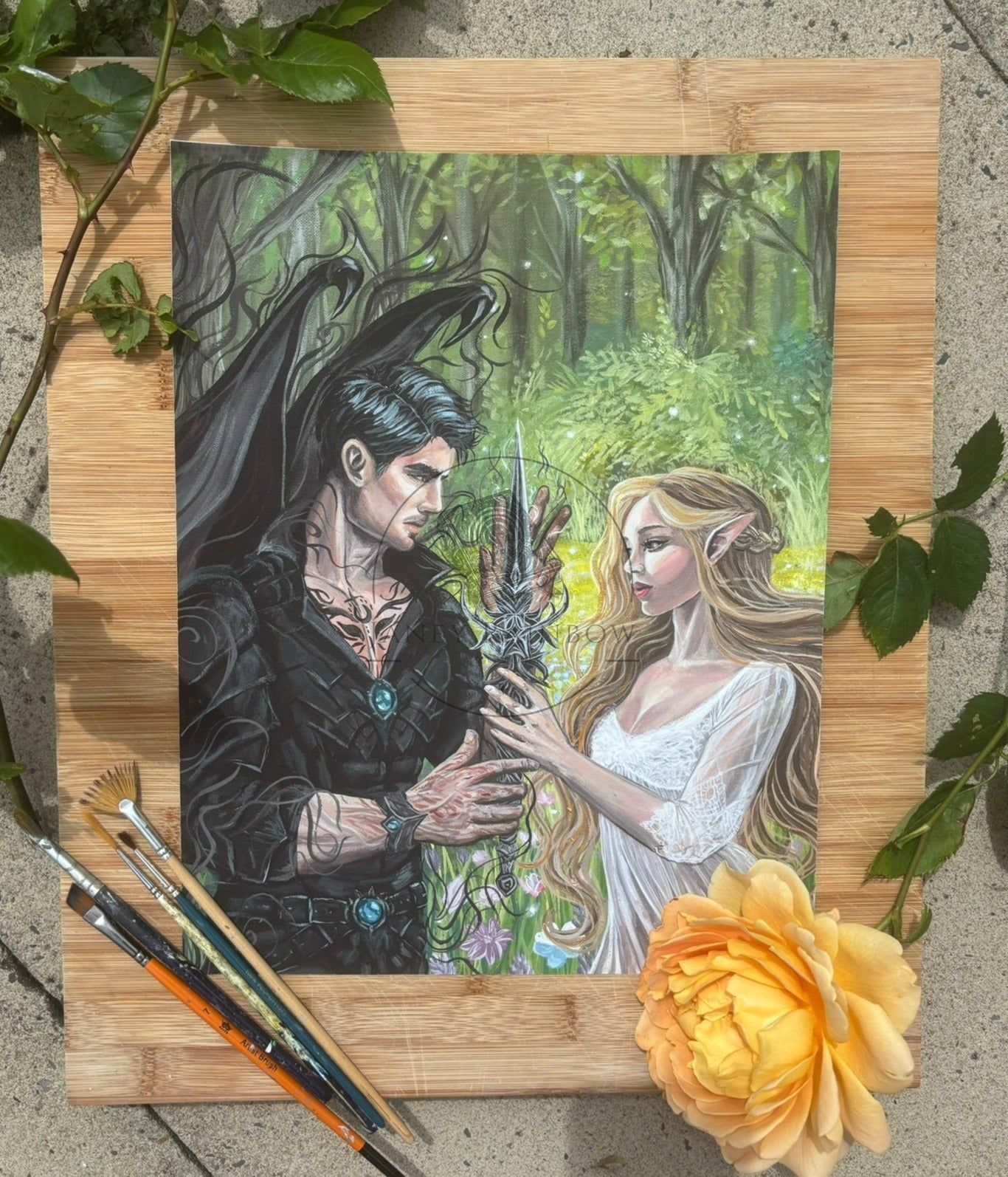 A Giclée fine art print of "Shadows and Blooms". Original painting created by Janey Rainbow.